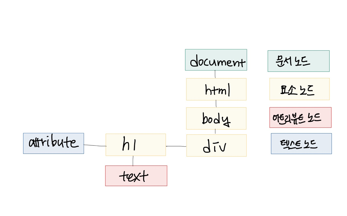 - node는 DOM트리에 있는 모든 타입의 객체를 포괄하는 개념으로 문서 그 자체가 될수도 있고 특정한 HTML 태그인 <div>, <h1>, <input>이 될수도 있다.