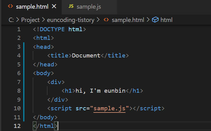 간단한 html문서를 만들어 js파일과 연결했다.
