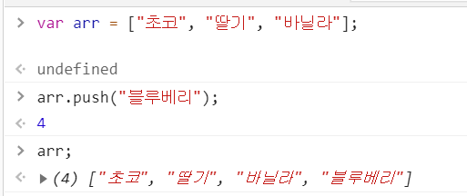 → 반환값 : 원소가 추가된 배열의 길이(length)속성