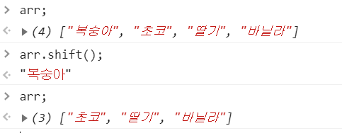 4. shift() = 맨 앞 원소 제거