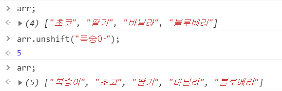 2. unshift() = 맨 앞에 추가