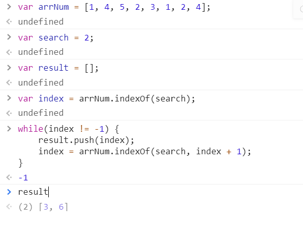 5. indecOf(찾을 값, 시작할 인덱스) = 인자로 받은 값의 인덱스값 반환