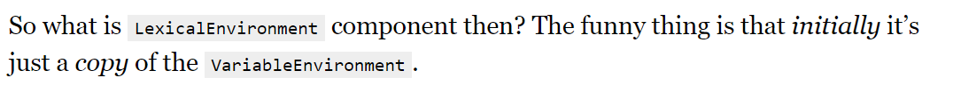 LexicalEnvironment는 초기에는 VariableEnvironmement의 복제본이다.