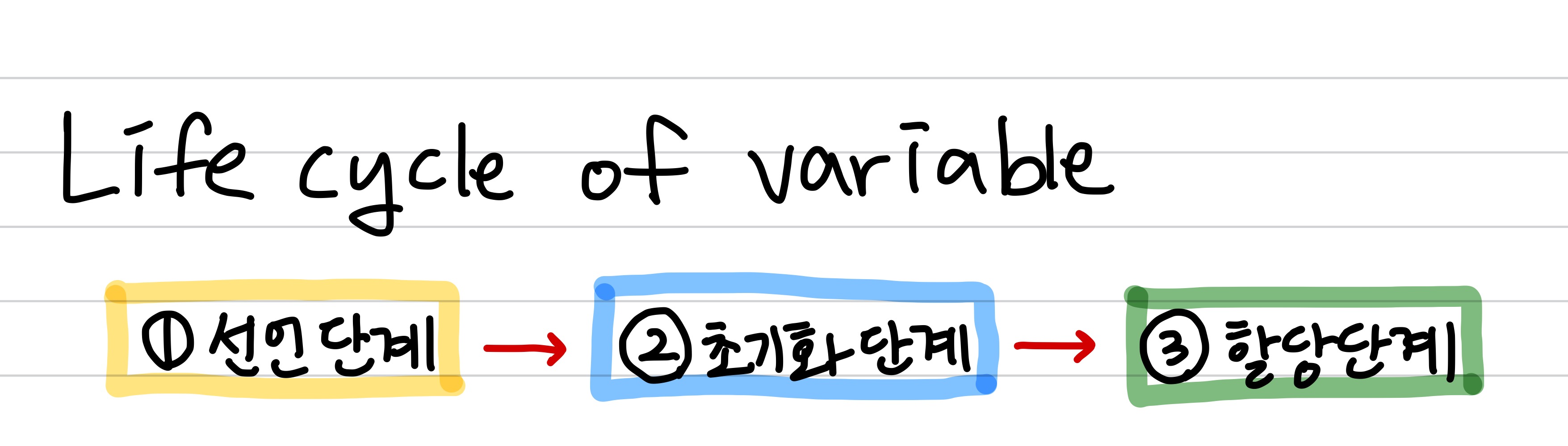 위 그림은 기본적인 변수의 생성 단계를 나타낸 것이다.