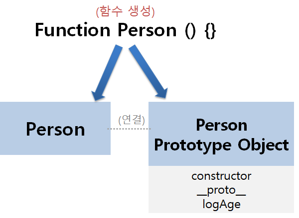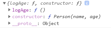 Person의 프로토타입 객체에는 logAge메서드, constructor, __proto__속성이 있다.