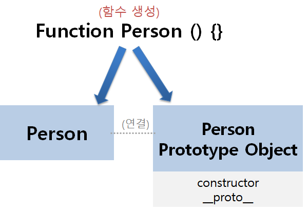 Person을 생성자함수로써 만든 객체 인스턴스 person1은 이 함수의 프로토타입 객체(Prototype Object)에 있는 속성과 메소드에 별다른 명령 없이 접근할 수 있게 된다.