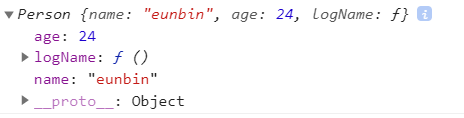 객체 내부에는 age, logName(), name, __proto__ 속성이 들어있다.