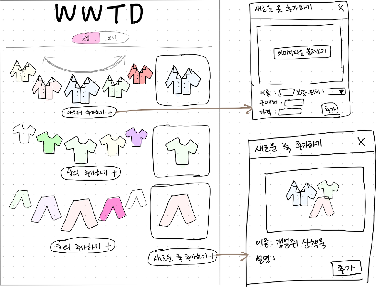 내 옷장은 곧 나의 취향이라고 생각한다. 즉 내가 이제까지 구매한 옷들, 특히 그중에서도 자주 입는 옷들이 어떤 옷들인지를 한 눈에 파악할 수 있도록 웹 상에 깔끔하게 정돈된 나의 옷장을 만들고싶었다.