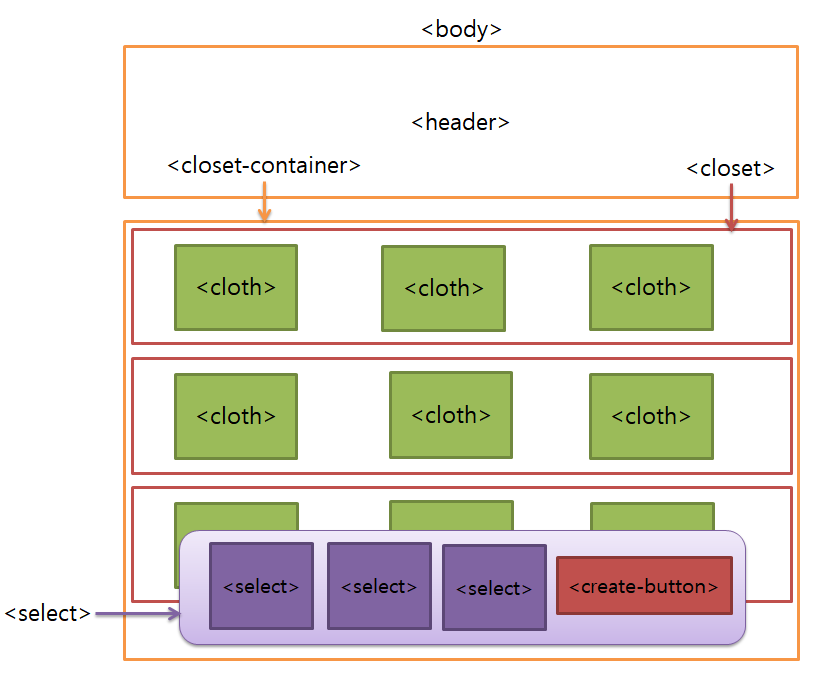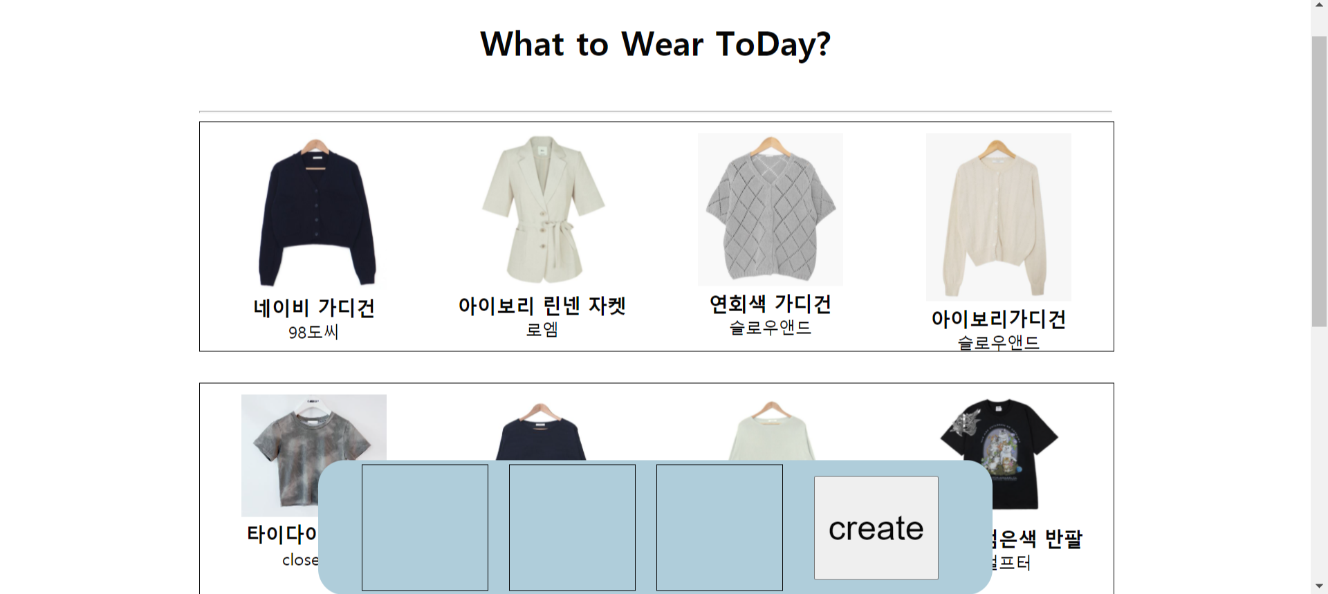 - 설명 : 어지러운 옷장 속을 한 눈에 보여주고 나만의 코디를 저장하는 사이트