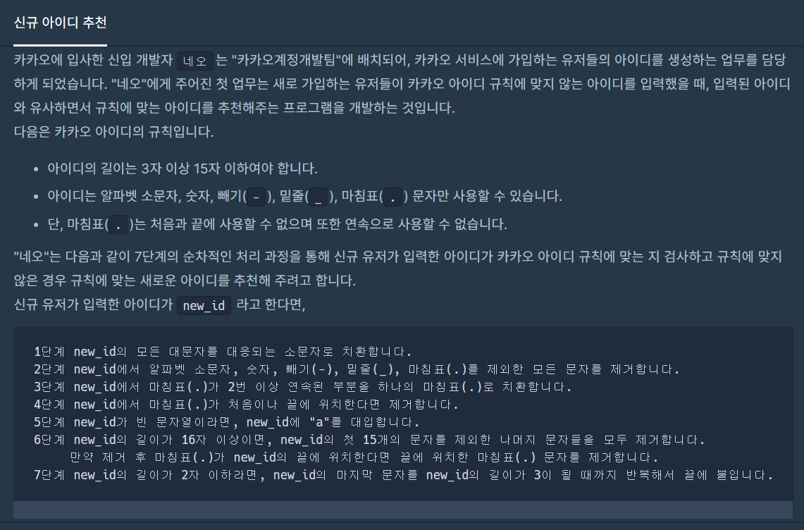 - 문제명 : 신규 아이디 추천