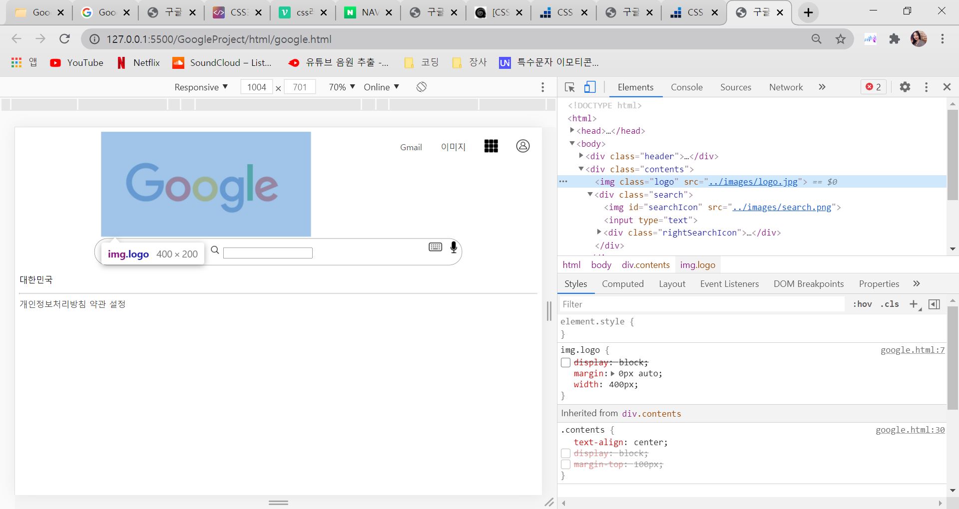 ※ 오늘 가장 오래 삽질했던 부분은 구글 로고 가운데정렬이었다.