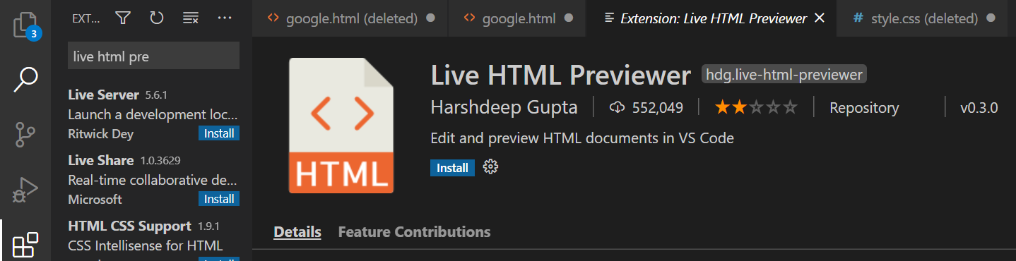 2. Live HTML Previwer : 실시간으로 html 미리보기를 제공한다.